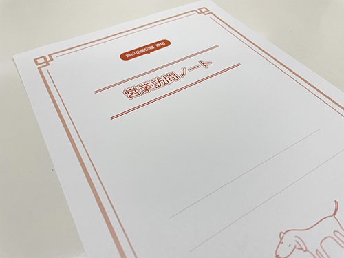営業でノートを使っているんだけど、それぞれのスタイルで書いていて、共有が難しいんだよねという話から、前川企画印刷で「オリジナルノート」を作成させてもらえませんか?という話になりました。